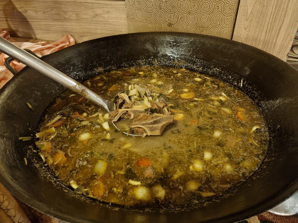Having rotating menus, the signature items include asam pedas ikan pari (spicy tamarind stingray), masak lemak nangka ikan masin (jackfruit and salted fish in coconut gravy), pajeri nenas (pineapple curry), ayam masak merah (chicken in spicy tomato sauce), sup tulang 7 keturunan (beef ribs soup), nasi briyani (rice dish flavored with spices), ayam goreng berempah (spiced fried chicken), bubur lambuk (spiced congee), kari kambing berkentang (mutton curry with potatoes), lala masak cili kering (clams cooked with dried chillies), kambing bakar (roast lamb) with black pepper sauce and kuey teow goreng kerang (stir-fried flat rice noodles with cockles).