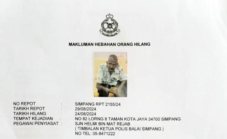 Therefore, anyone who recognizes him or has information regarding his whereabouts is urged to contact the Deputy Chief of the Simpang Police Station, Sergeant Helmi Mat Rejab, at 05-8471222 or visit the nearest police station.