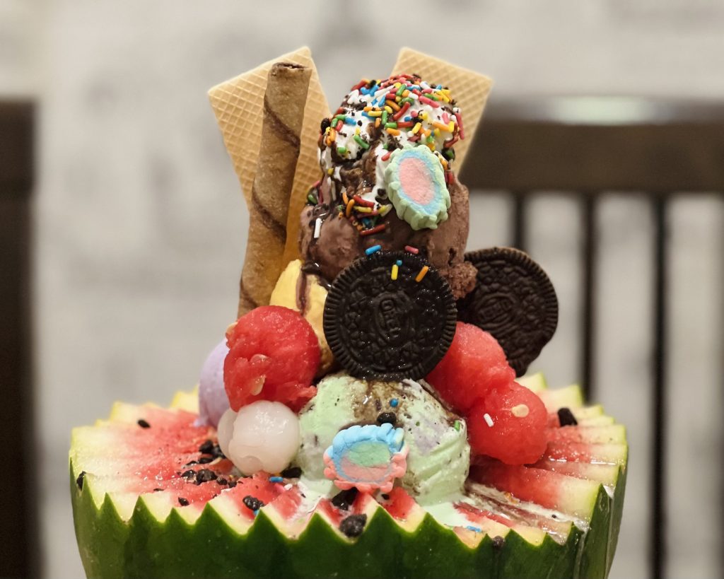 No visit to Crazy Ice Cream and Salad House is complete without the Watermelon Ship. This vibrant treat features a watermelon base topped with ice cream, marshmallows, cookies, and waffles. Customize with three (RM19.90) or five scoops (RM21.90) in flavors like vanilla, chocolate, yam, and mint. Sweet, crunchy, and refreshing, it’s perfect for sharing with family or friends.