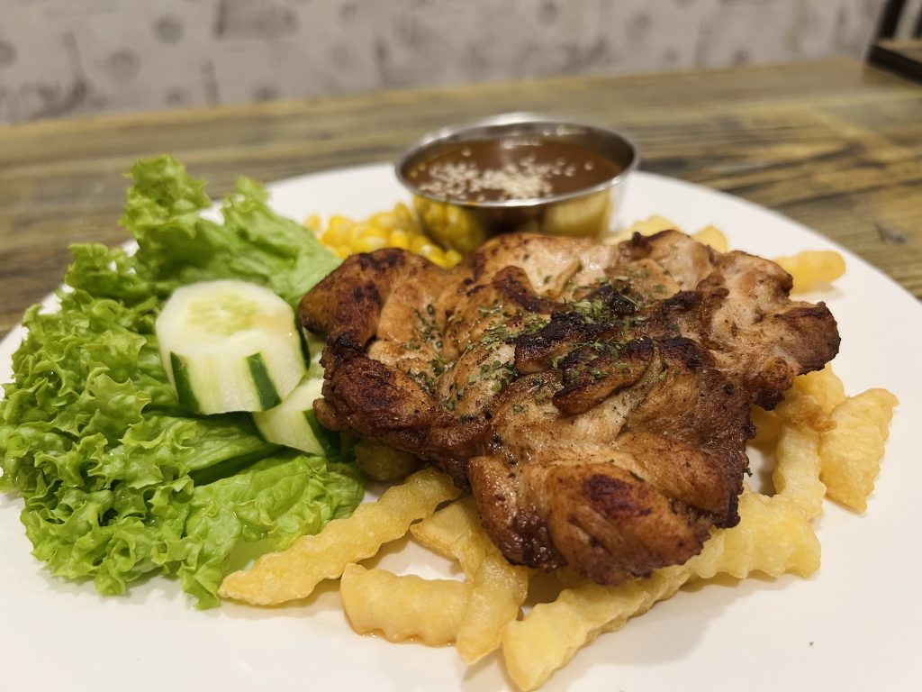 The Chicken Chop with BBQ Sauce (RM24.90 set; RM21.50 ala carte) is a must-try bestseller. Made with a special in-house recipe, the BBQ sauce perfectly enhances the chicken’s savoury flavors without overpowering it. Served with fries, corn, and greens, the dish is hearty and satisfying. The set meal, which includes creamy mushroom soup and refreshing iced lemon tea, is a fantastic deal at just RM24.90.