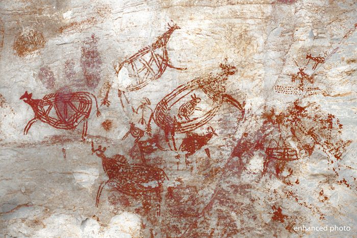 Not far to the right of this X-ray panel are some discernible stippled drawings – few lines formed by small dots probably showing human or animal walking tracks.
