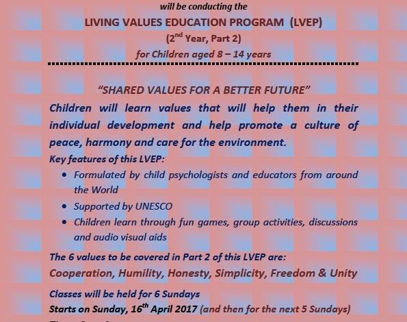 Home/Happenings/Events/Living Values Education Programme for children aged 8-14 years (16 Apr 2017) EventsHappenings Living Values Education Programme for children aged 8-14 years (16 Apr 2017) editor Send an email 08/04/20170 400 Less than a minute Facebook X WhatsApp editor Send an email 08/04/20170 400 Less than a minute Facebook X WhatsApp Show More Share Facebook X WhatsApp