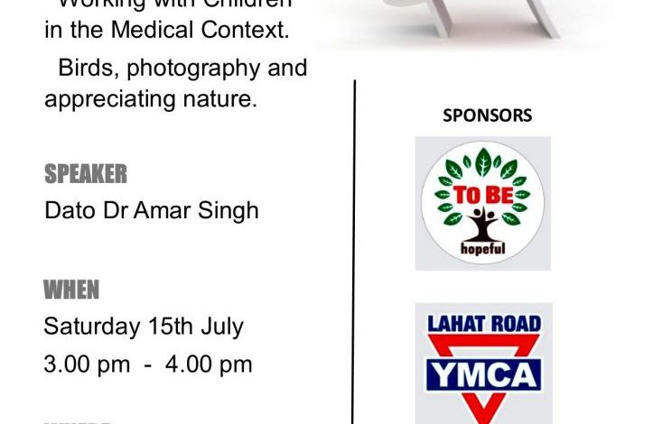 Dato’ Dr Amar Singh is a consultant paediatrician. His talk will be on “Working with Children in a Medical Context” and “Birds, Photography and Appreciating Nature” which is his other passion and hobby.