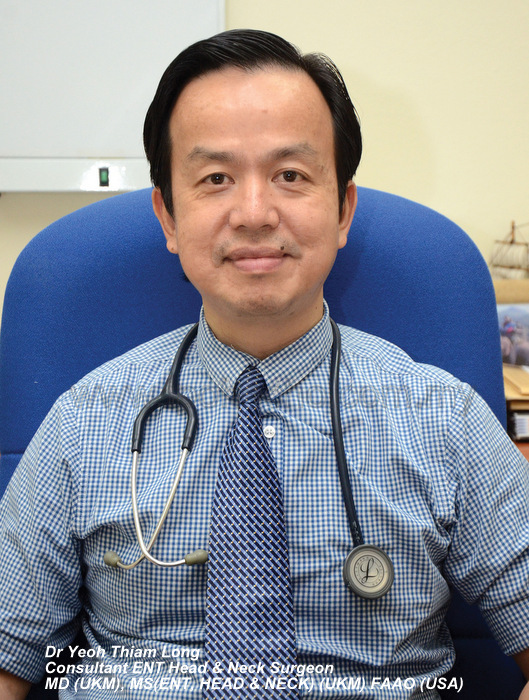 Dr Yeoh Thiam Long Yeoh Ear, Nose, Throat Specialist Clinic Suite 2-11, KPJ Ipoh Specialist Hospital, 26, Jalan Raja Dihilir, 30350 Ipoh. Tel: 05 254 3188 (Direct Line) 05-240 8777 ext 8523 / 8522
