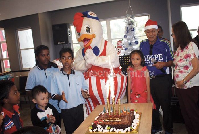 About 65 children from 1Malaysia Home and Vision Home were feted to a Christmas lunch at the Sunway KFC outlet in December. The party was hosted by Hope Worldwide Malaysia and Mr Lau Wing Fatt and co-sponsored by KFC Malaysia.