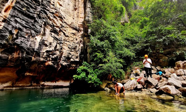 Kayaking in Gua Air but a revisit few days ago shown that the water is not clear anymore, we can’t see what’s at the bottom and the blasting is a lot more closer to Gua Air. (from left to right- Lee, Maggie and me) Photo by Ching Boon Tat
