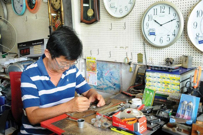 Gifted with deft fingers and a great eye for detail, the watchmaker works steadily, all day long in the tropical heat.