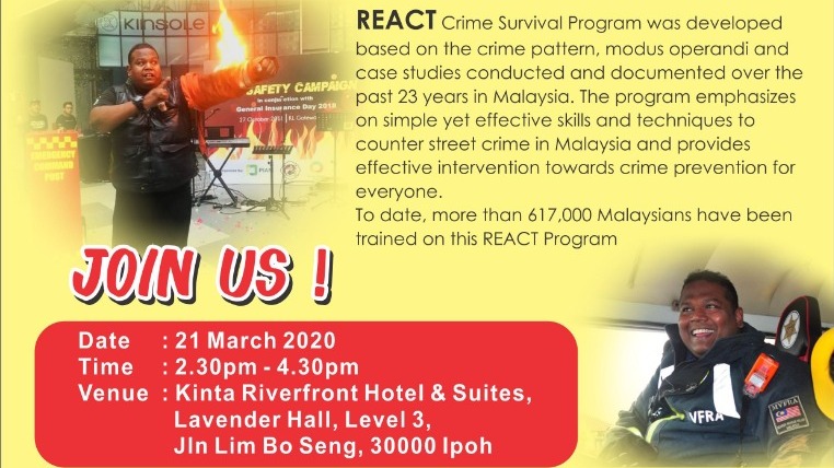 Home/Happenings/Events/POSTPONED: REACT Crime Survival Programme (21 Mar 2020) EventsHappenings POSTPONED: REACT Crime Survival Programme (21 Mar 2020) vwsl Send an email 13/02/20200 1,317 Less than a minute Facebook X WhatsApp Tagscrime prevention perak women for women pww vwsl Send an email 13/02/20200 1,317 Less than a minute Facebook X WhatsApp Show More Share Facebook X WhatsApp