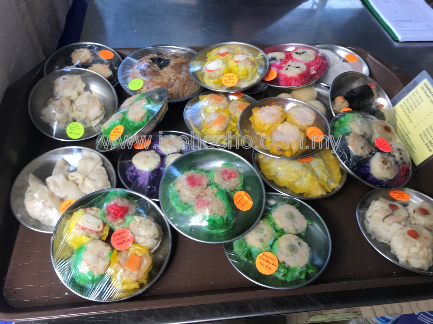 Selling only dim sum and pau, all from halal-certified suppliers, the food stall offers around 25 to 30 different varieties of dim sum, of which new varieties are always added. About 10 varieties of pau are offered. Dim sum is sold at RM6 to RM9 per dish; pau is sold at RM3 for one and RM5 for two. (Topseller is the Salted Egg Pau.)