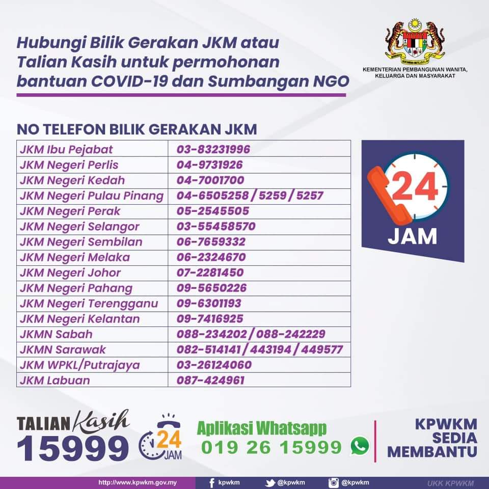 Individual request could be made directly to the district social welfare office / state operations room / Social Welfare Department, referral by community leaders or call to Talian Kasih 15999.