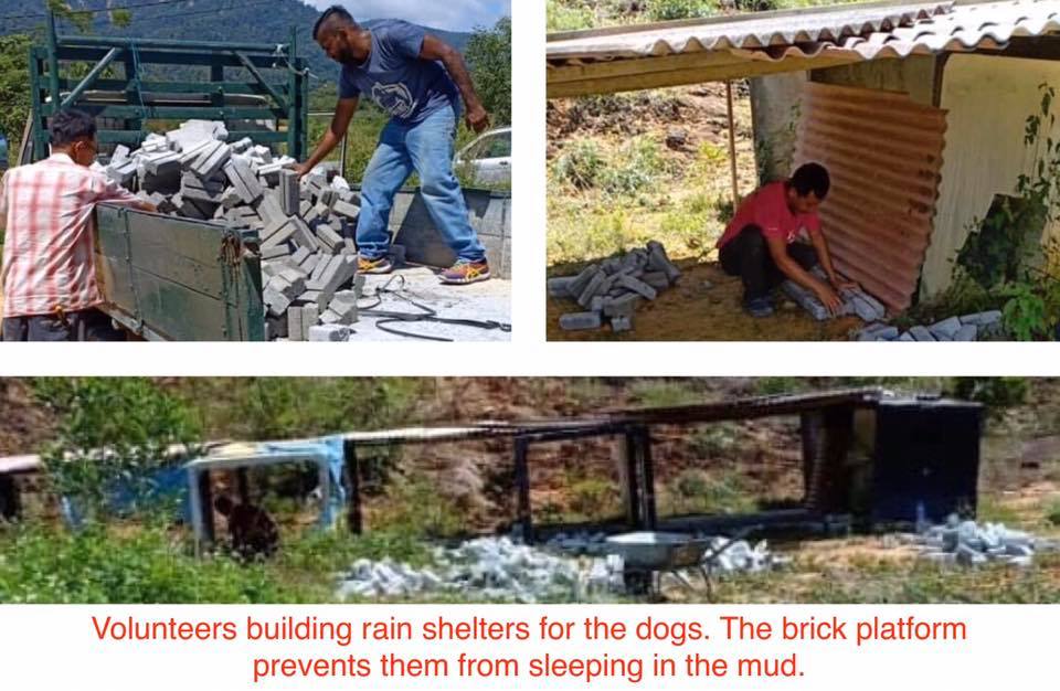 Noah’s Ark is a cost-conscious organization; they buy food wholesale, collect food scraps from restaurants, cook rice to add to the food to stretch it out, collect used and donated materials to build rain shelters to help the dogs stay dry, etc. They are doing their best to cope with all that.