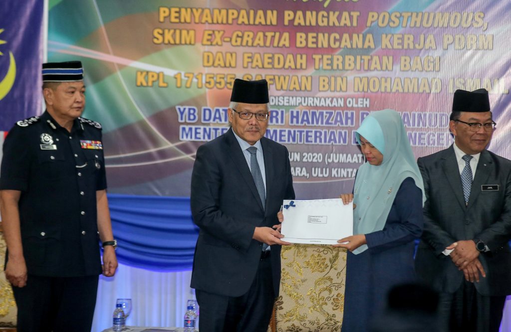Home Affairs Minister, Dato’ Seri Hamzah Zainuddin explained that the presentation was an appreciative gesture to the late Safwan and also all the law enforcement officers who serve the nation.