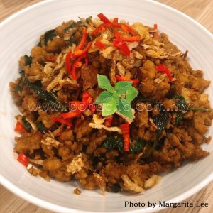 - Heat oil in a wok and add in the ground pork. Stir fry for 2-3 minutes or until cooked. Remove the pork but leave the oil in the pan.