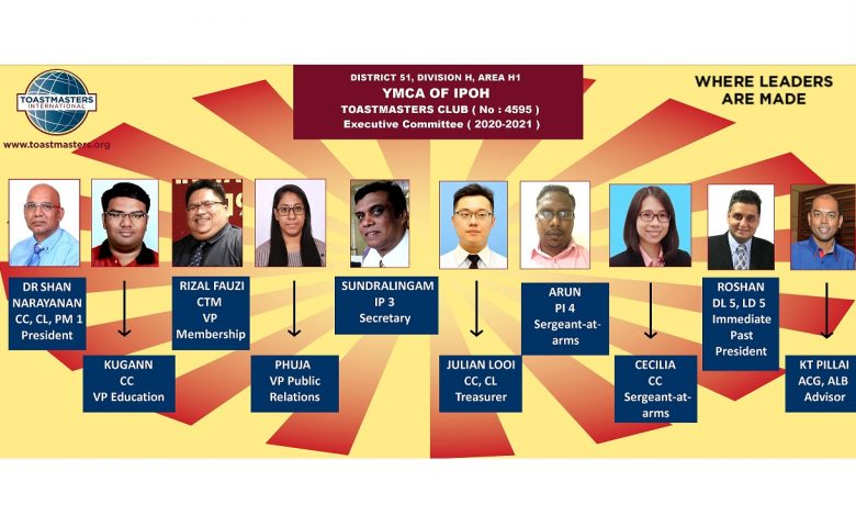 YMCA OF IPOH TOASTMASTERS CLUB- Introducing the New President & his exco for the year 2020-2021.