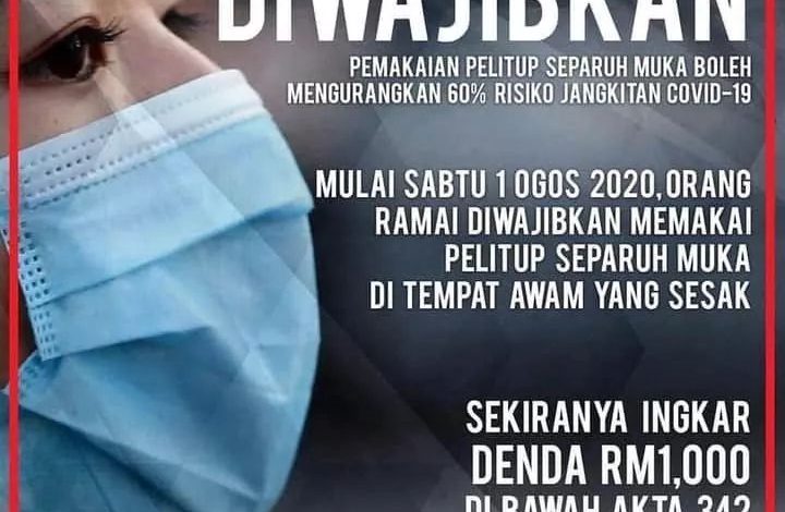 Effective August 1, the wearing of face masks at crowded public areas and on public transport is mandatory in which failure to comply will result in a fine of RM1000 under Act 342 (Prevention and Control of Infectious Diseases Act 1988).