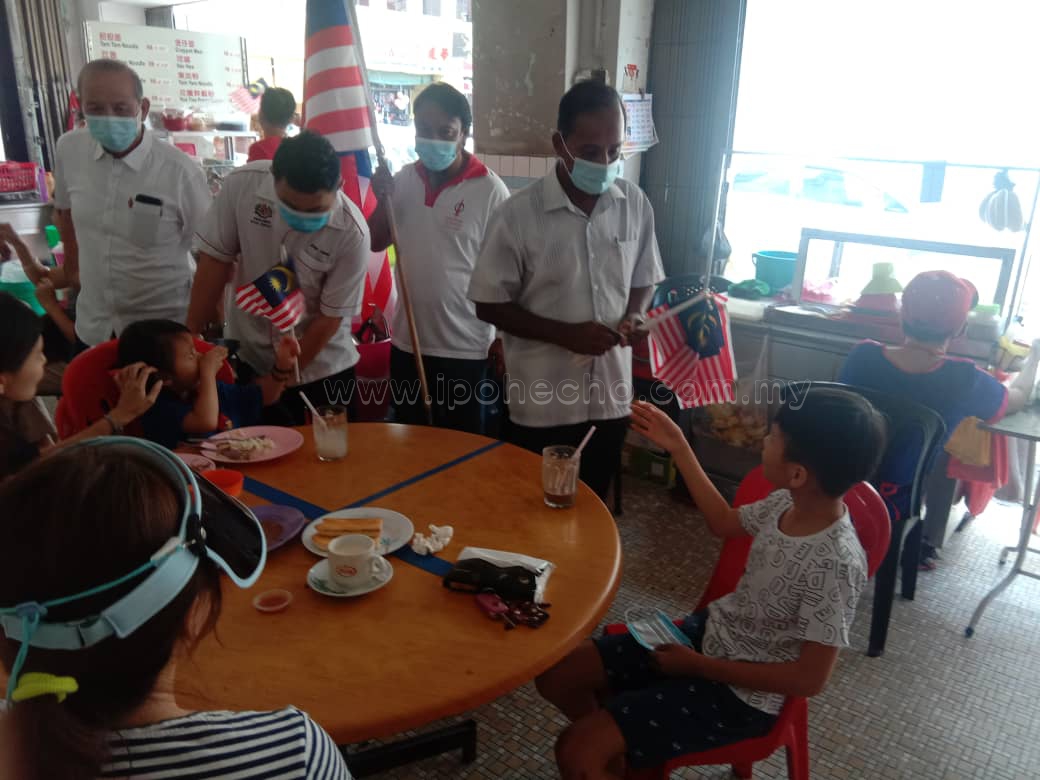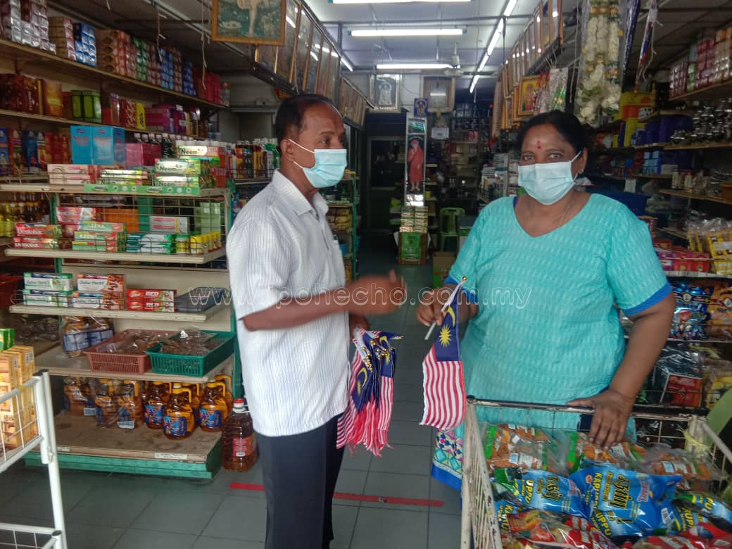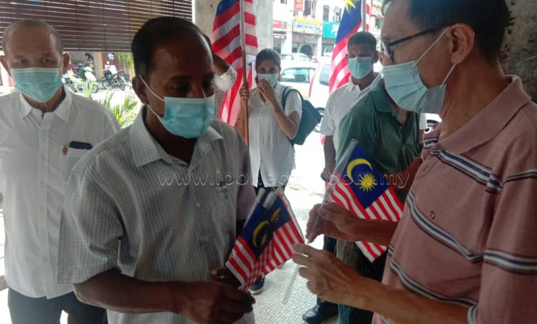Aimed to promote patriotism, Member of Parliament for Ipoh Barat M. Kulasegaran led the distribution of the national flags to the locals in Ipoh Old Town on Saturday, August 22 together with members of the Ipoh Little India Traders Association.