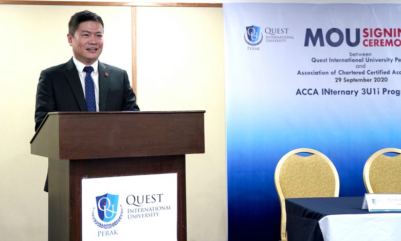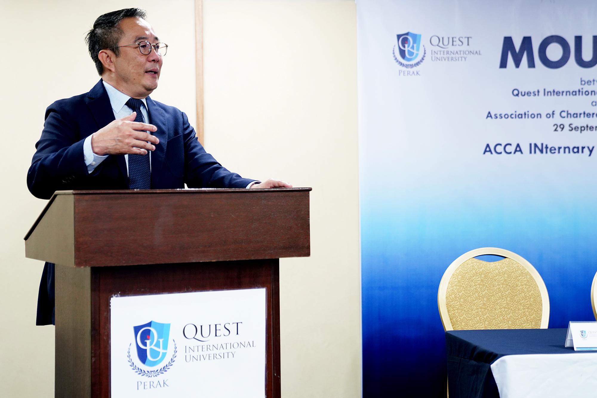 A Memorandum of Understanding (MoU) was signed between Quest International University (QIU) and the Association of Certified Chartered Accountants (ACCA) which makes the QIU part of the INternary programme.