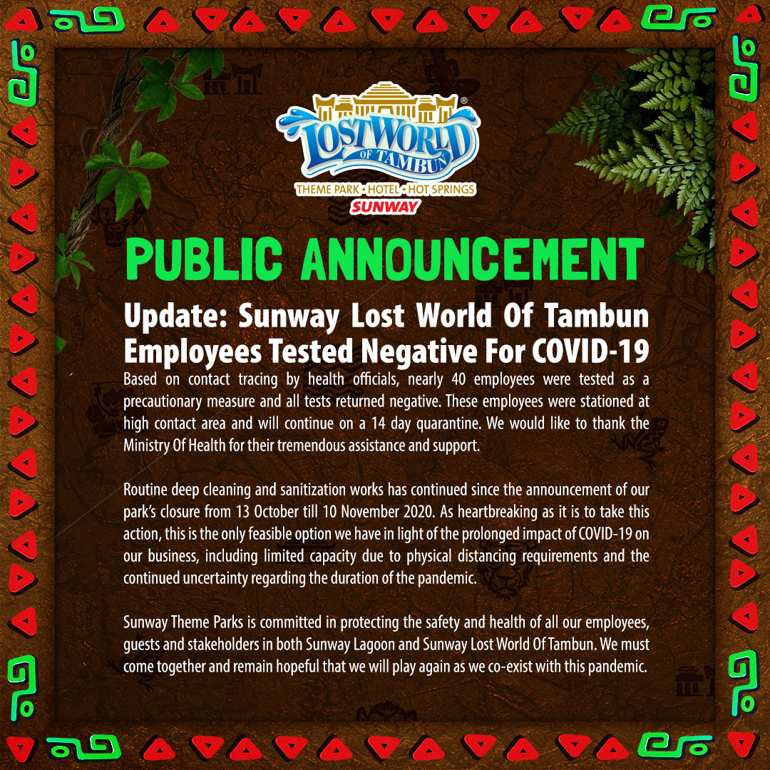 Sunway Lost World Of Tambun Employees Tested Negative For COVID-19