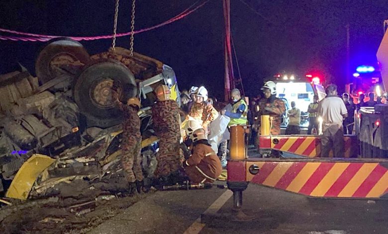 A father and his two sons died in an accident which involved a flipped over cement trailer at Jalan Lama Kota Bharu last night (November 2).