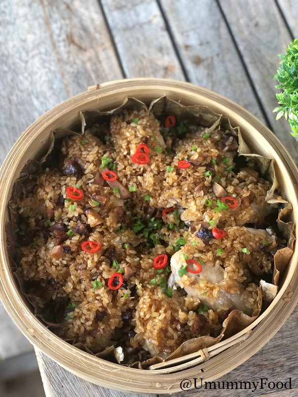 - Fill a pot with water and bring it to a boil. Line a steamer with lotus or banana leaves and arrange the chicken wings neatly. Steam over high heat for 40 minutes.