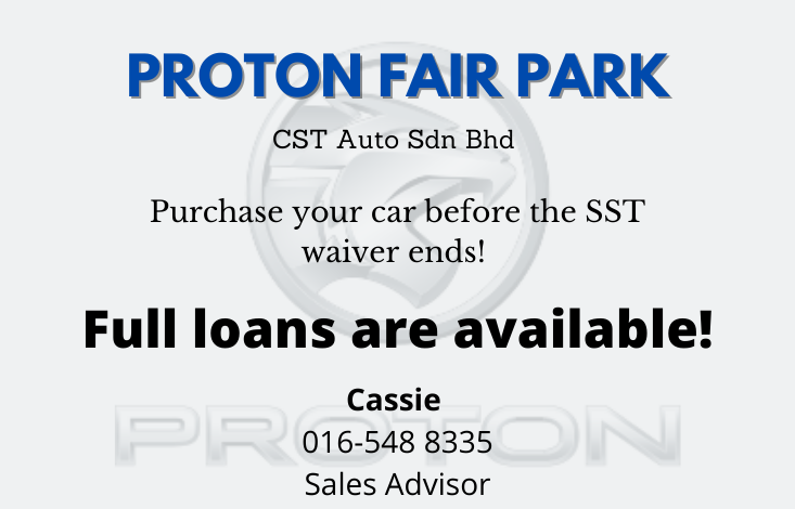 Proton Fair Park CST Auto Sdn Bhd Purchase your car before the SST waiver ends! View the catalogue here. *Full loans are available For more information, contact: Cassie 016-548 8335 https://wa.me/message/O4W7IZQCSIQII1 https://web.facebook.com/Cassie0024 Sales Advisor