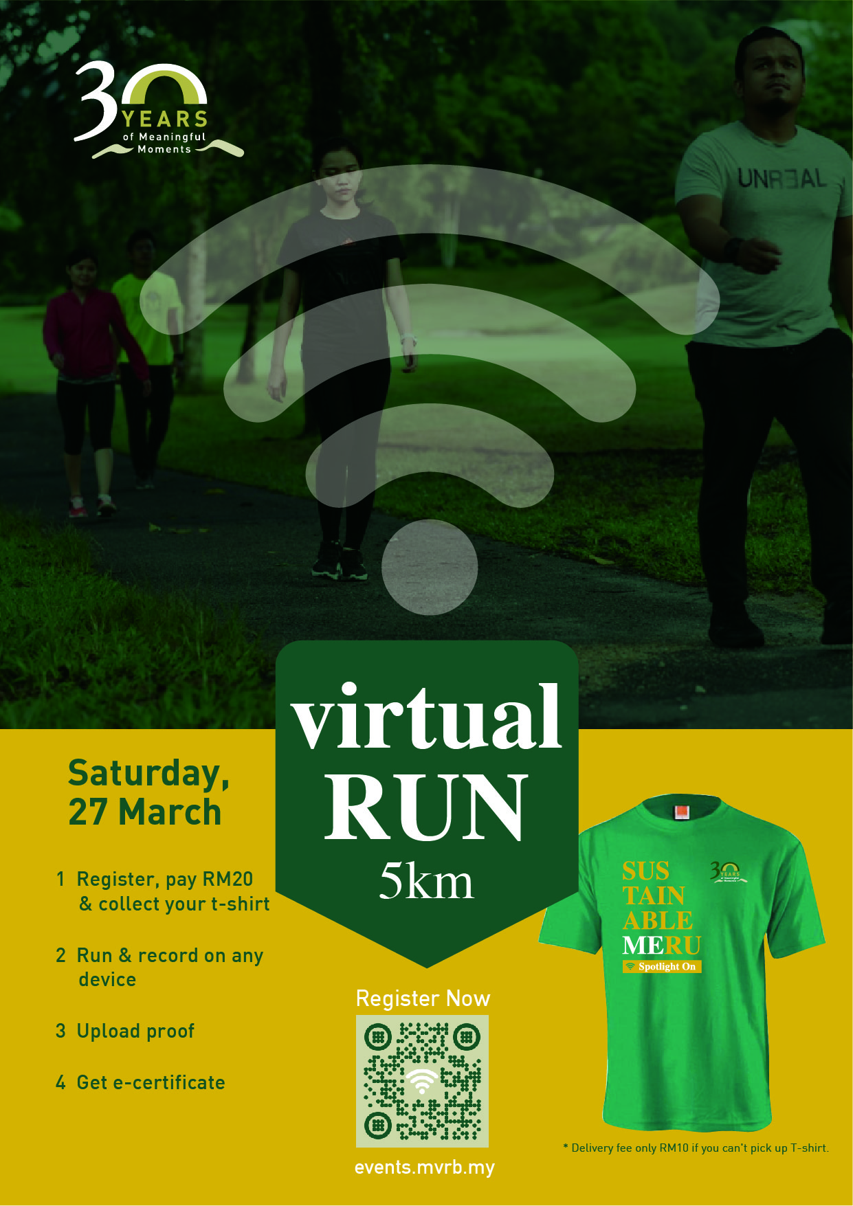 Participants who would like their t-shirt delivered will pay an additional delivery charge of RM10. For more information or to register for the run go to: events.mvrb.my