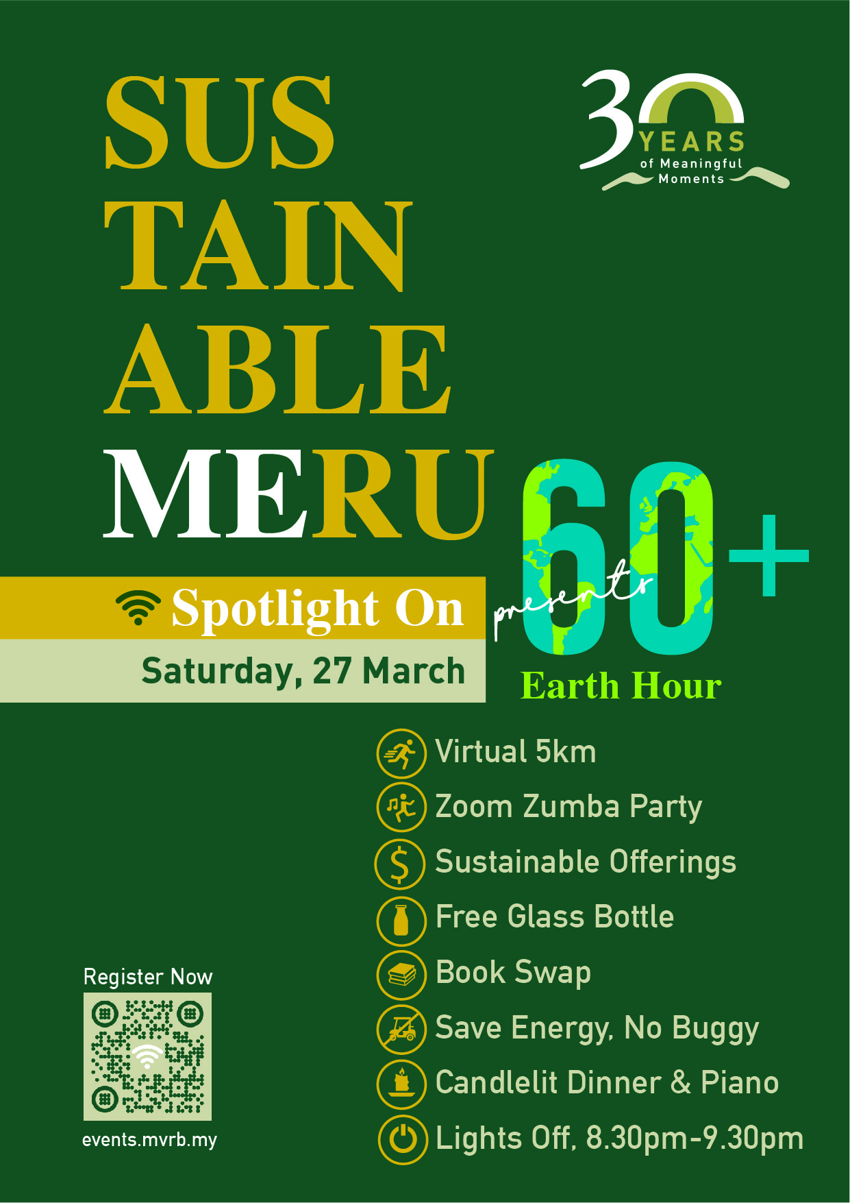 Meru Valley Resort’s Earth Hour Virtual Race is open for all ages and funds raised will go to WWF-Malaysia to help wildlife conservation efforts. All registrants will be entitled to a unique T-shirt and finishers will receive a customised E-certificate, all for a registration fee of RM20.