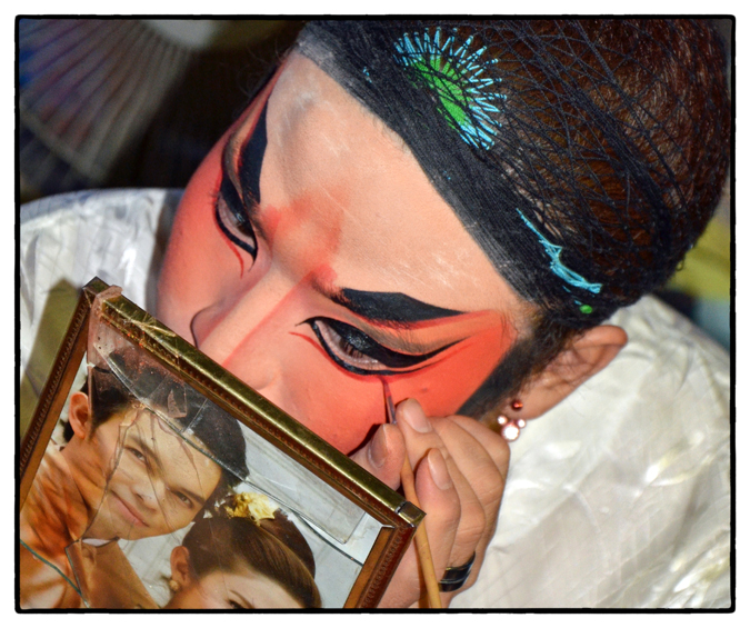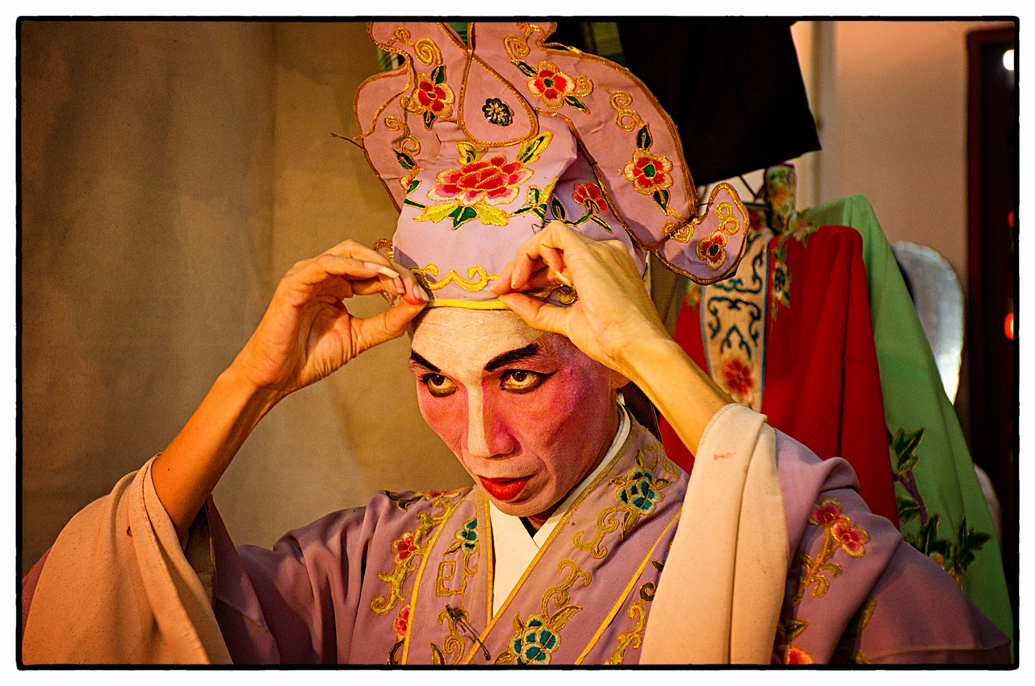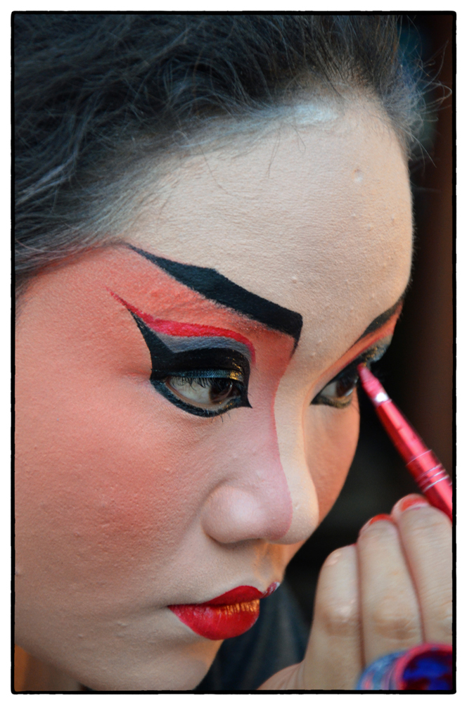 The first opera I saw was in Penang in 2014. I was very intrigued and asked one of the actors from the troop if I could go backstage to see the make-up and costume preparations. The two hours of meticulous and repetitive work impressed me as much as the atmosphere and the colors. What was surprising was the fact that there were very few spectators. One lady told me that many people, especially the young ones, are no longer interested in the traditional form of art and that there were very few actors left in the country. That particular troupe came from Thailand. Of course, I did not understand the story and could not culturally relate to it, but it was fascinating.