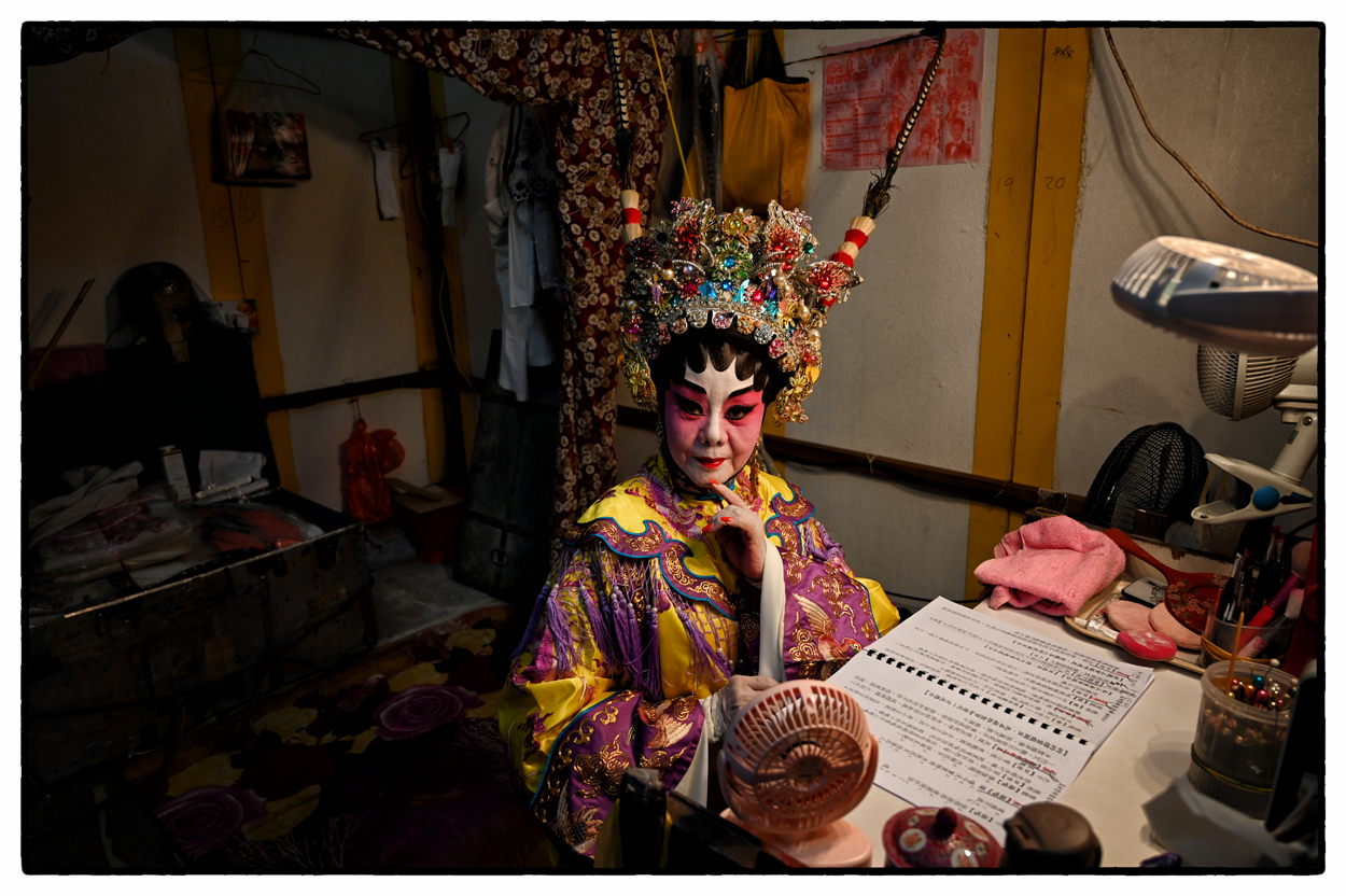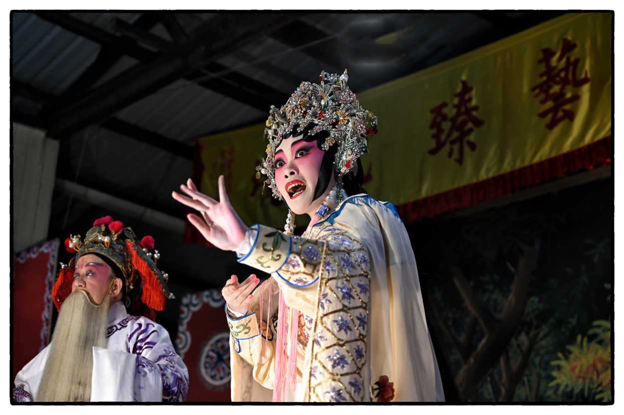 Since then, I have watched performances in Kajang, Batu Gajah, Malacca, Gopeng and Ipoh. Each time I was invited backstage. The performances always take place in the hall in front of a temple. I was told that during the Hungry Ghost Festival, operas are played for the ghost of the dead and not the humans, which explains why no one really comes to watch during that period. However during other times, the halls in Perak Are still full of spectators and professional troops from Hong Kong were invited yearly before Covid. Here are some of the moments I captured.