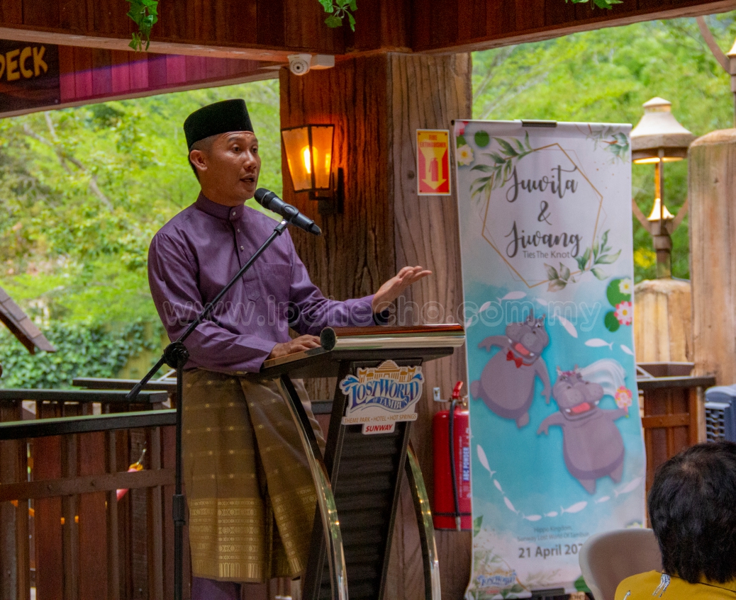 The first-ever animal wedding in Malaysia unfolded at Sunway Lost World Of Tambun (SLWOT) yesterday (April 21) as the hippopotamuses, Jiwang and Juwita tied the knot at the premises’ Hippo Kingdom in the presence of other animals and human friends. Running on a theme of fairytale and glamour, the ceremony was held following the Malay wedding culture with strict adherence to the health and safety standard operating procedures.