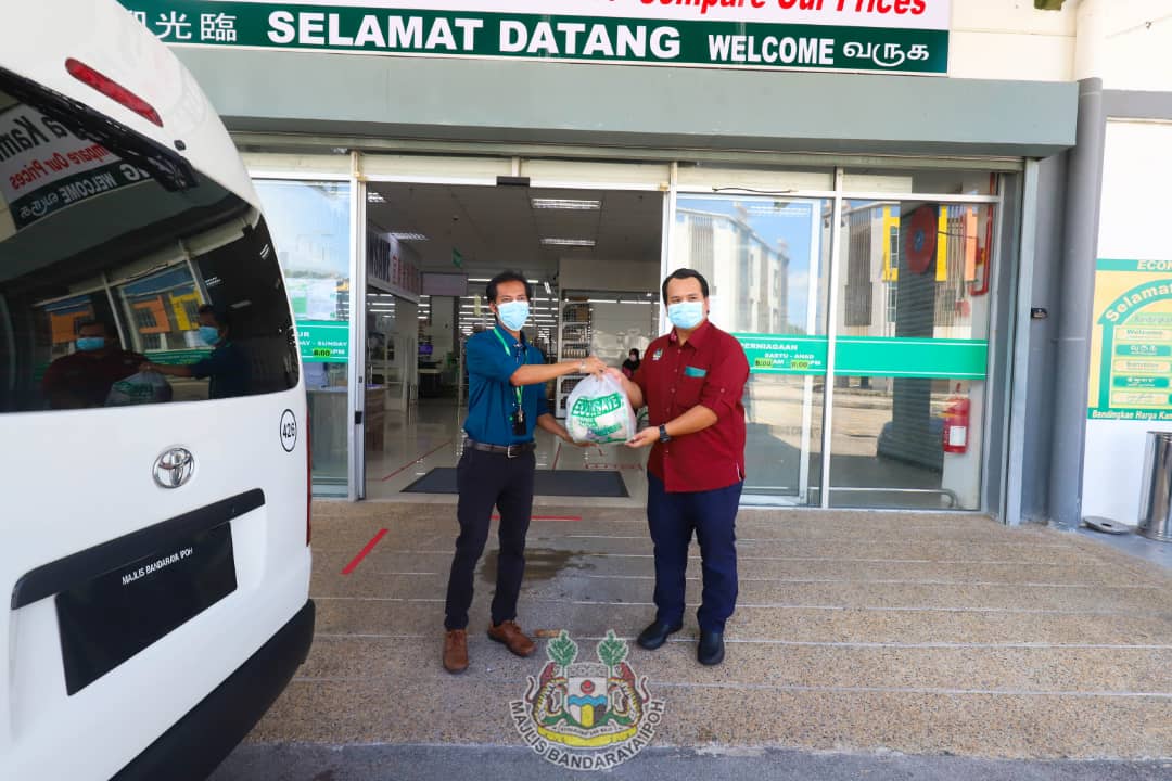 The Mayor of Ipoh, Dato’ Rumaizi Baharin @ Md Daud presented the donation to the Kinta Chief Assistant District Officer (Development), Mohd Noor Azam Ismail at the MCO Operations Room today (June 9) before distributing them to the residents.