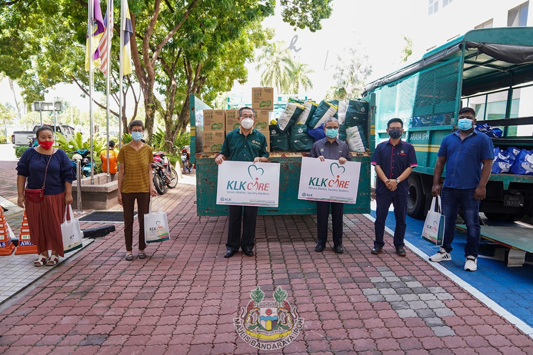 Kuala Lumpur Kepong Berhad (KLK) and the Ipoh City Council (MBI) collaboratively contributed food packs to 237 families at Waller Court Flats yesterday (June 25).