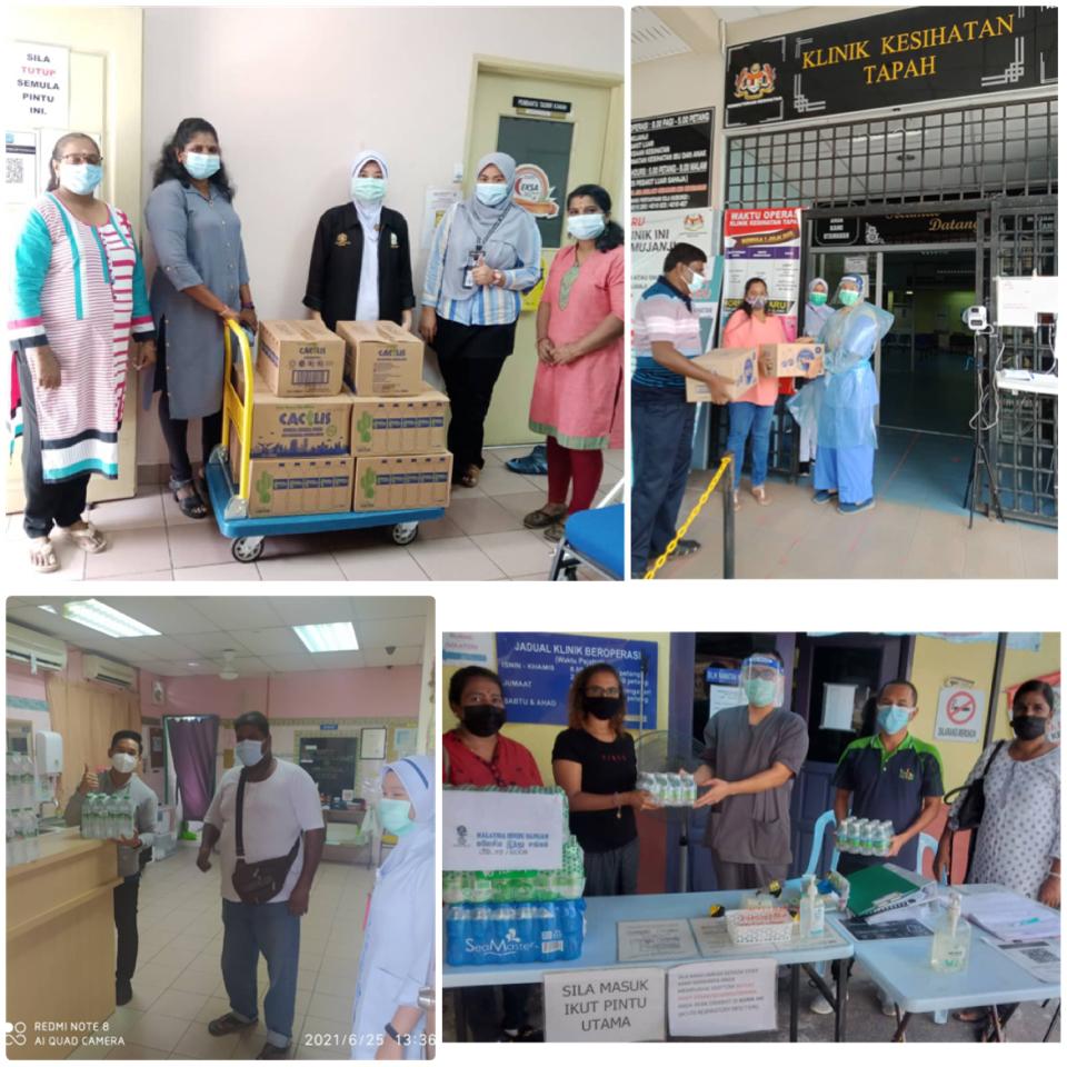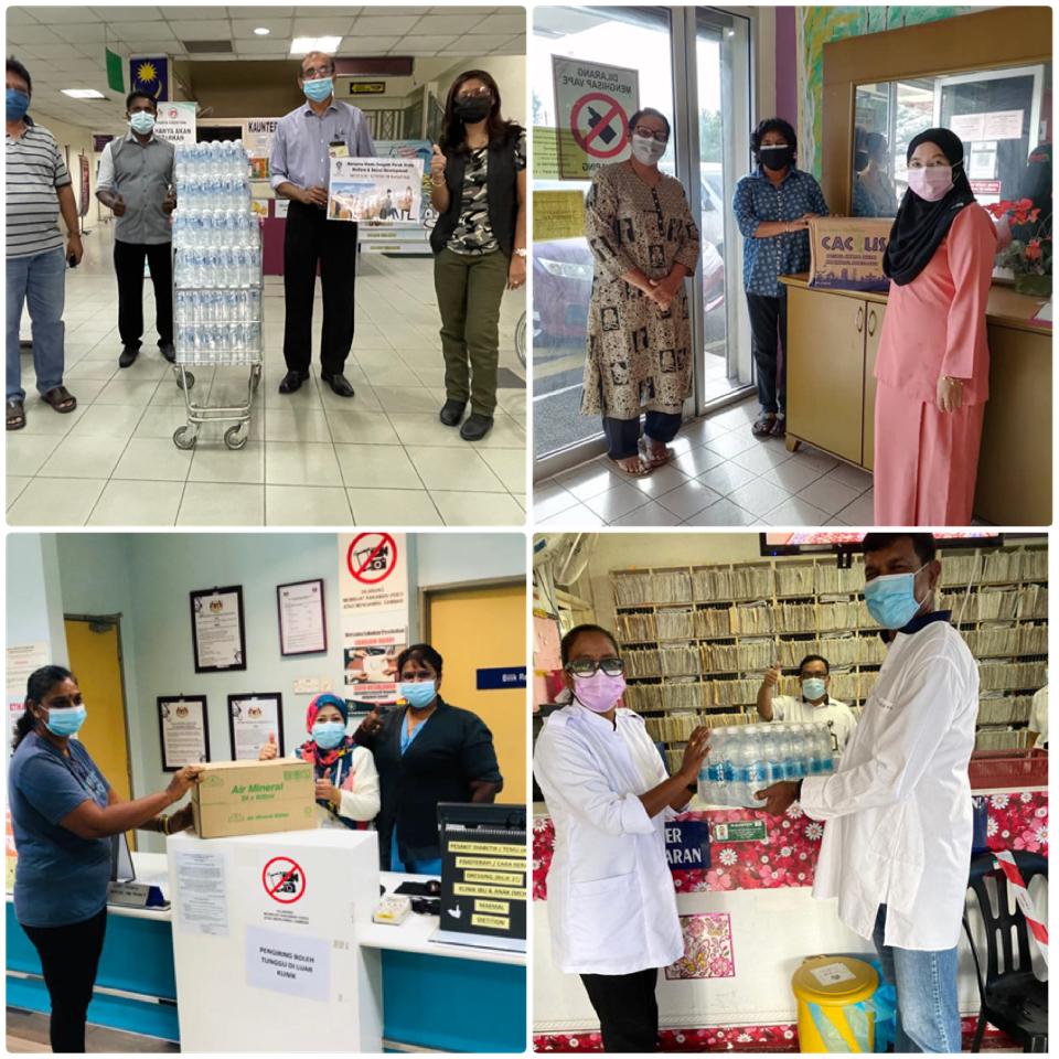 Recently on June 25, 15 Malaysia Hindu Sangam (MHS) Local Councils’ Welfare Section and the MHS Perak State Welfare & Social Development jointly organised a distribution of mineral water bottles to the Klinik Kesihatan (Health Clinics) in each council section involved.