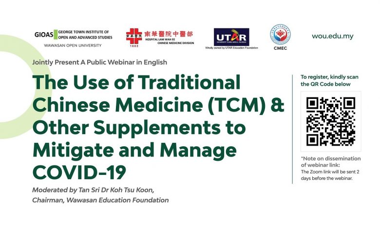 GIOAS is jointly organising a webinar with UTAR Hospital and Lam Wah Ee Hospital TCM Divisions, Malaysian Chinese Medical Society of Epidemic Control and Prevention (CMEC) on the topic of The Use of Traditional Chinese Medicine (TCM) & Supplements to Mitigate and Manage COVID-19.