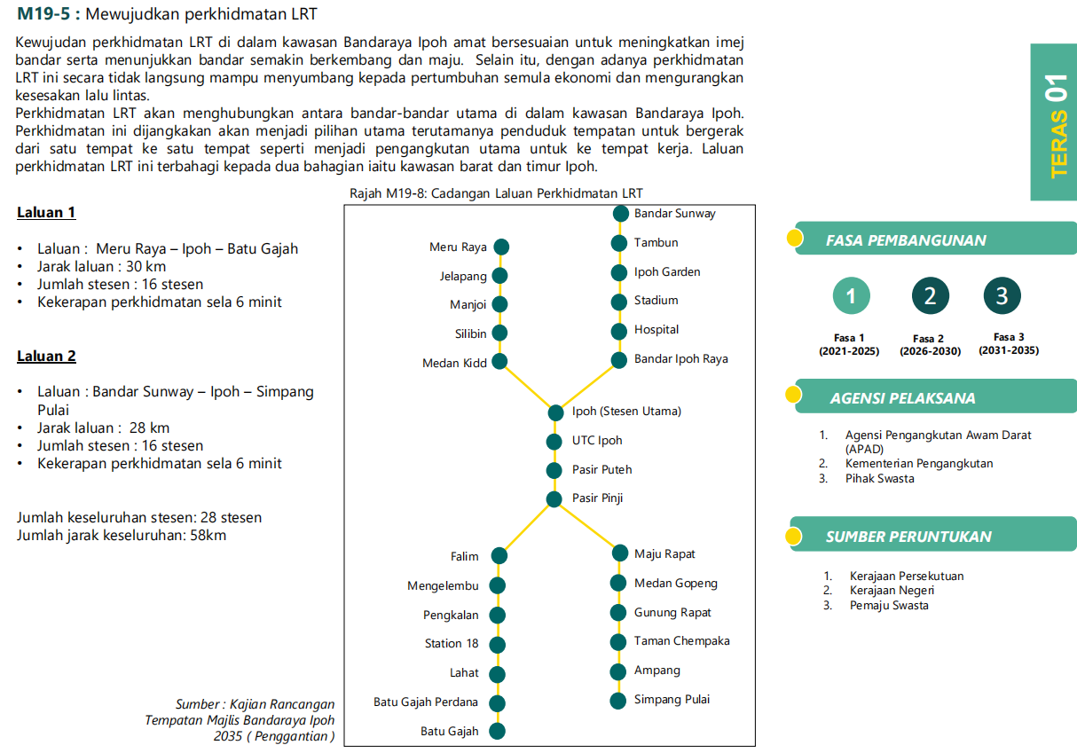 The LRT route is focused in two areas, namely the west and east of Ipoh.