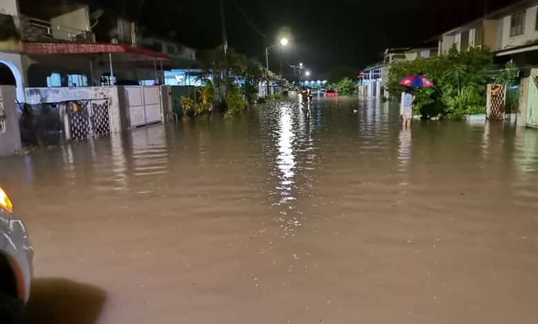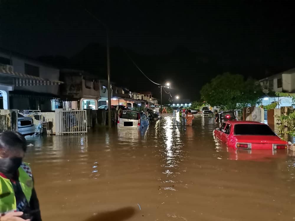 A flash flood occurred at Taman Cempaka last night, causing some areas to be inundated by waters 0.6 metres high.