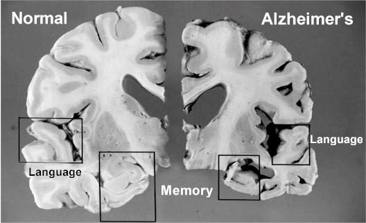 She shared with us a comparison photo of a normal brain and a brain affected by dementia where an apparent change in size can be seen. The altering of the shape is caused by the structural and chemical changes; the brain shrinks from the inside and outside.