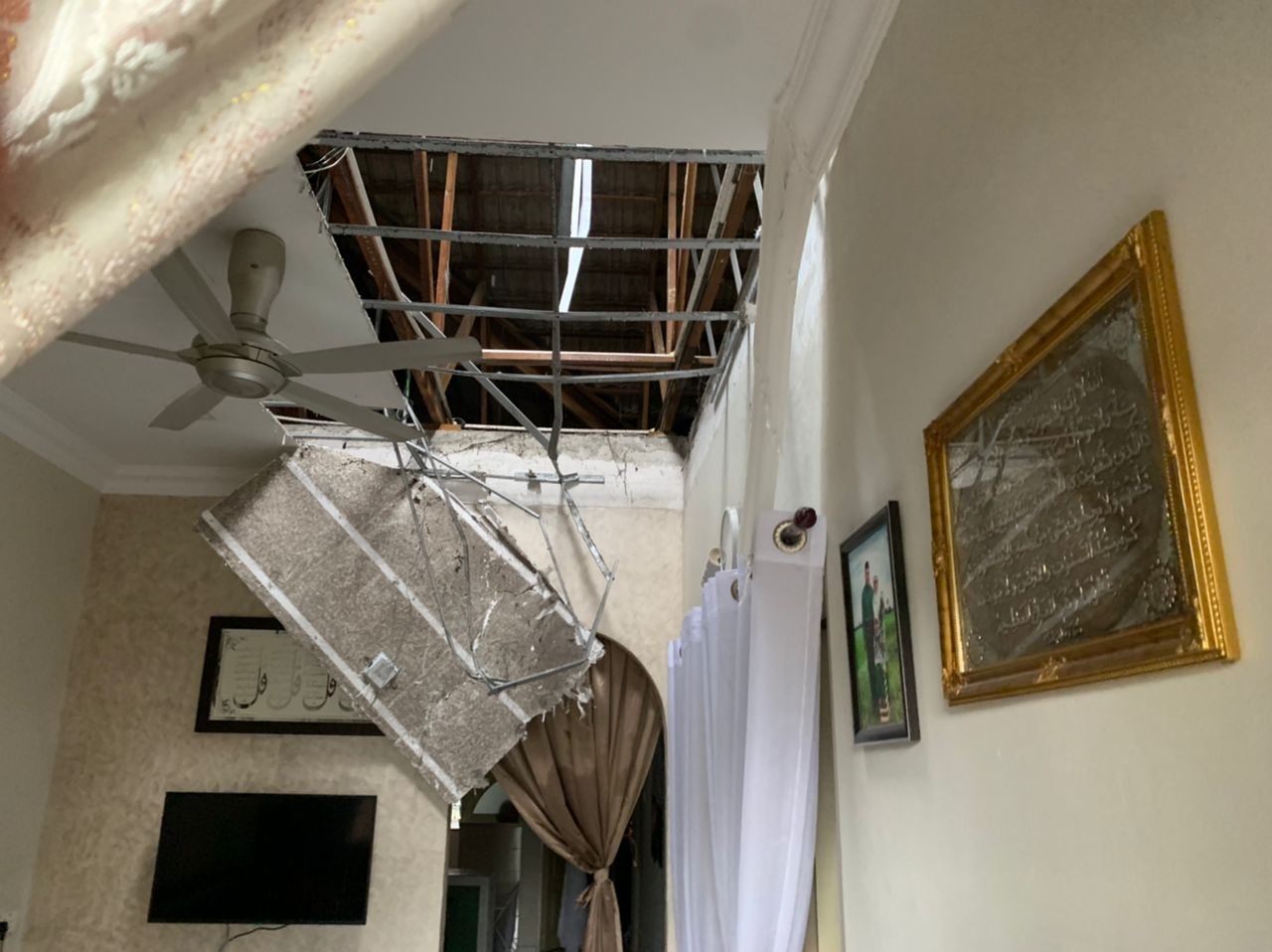 The storm incident which occurred between 5pm to 6pm damaged several residences especially the roofs and ceilings besides causing electricity poles to fall.