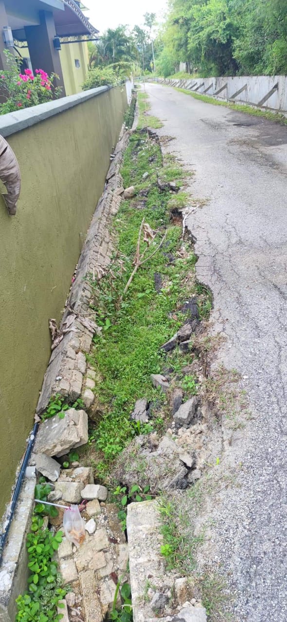 The residents at Taman Lapangan Ria have been lamenting the damage of the drain curb and several roads in the residential area.