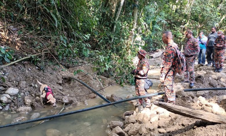 The body of the second victim believed to have been swept away by a water column (kepala air) at the area of Gunung Suku, Simpang Pulai was found by the rescue team yesterday morning.