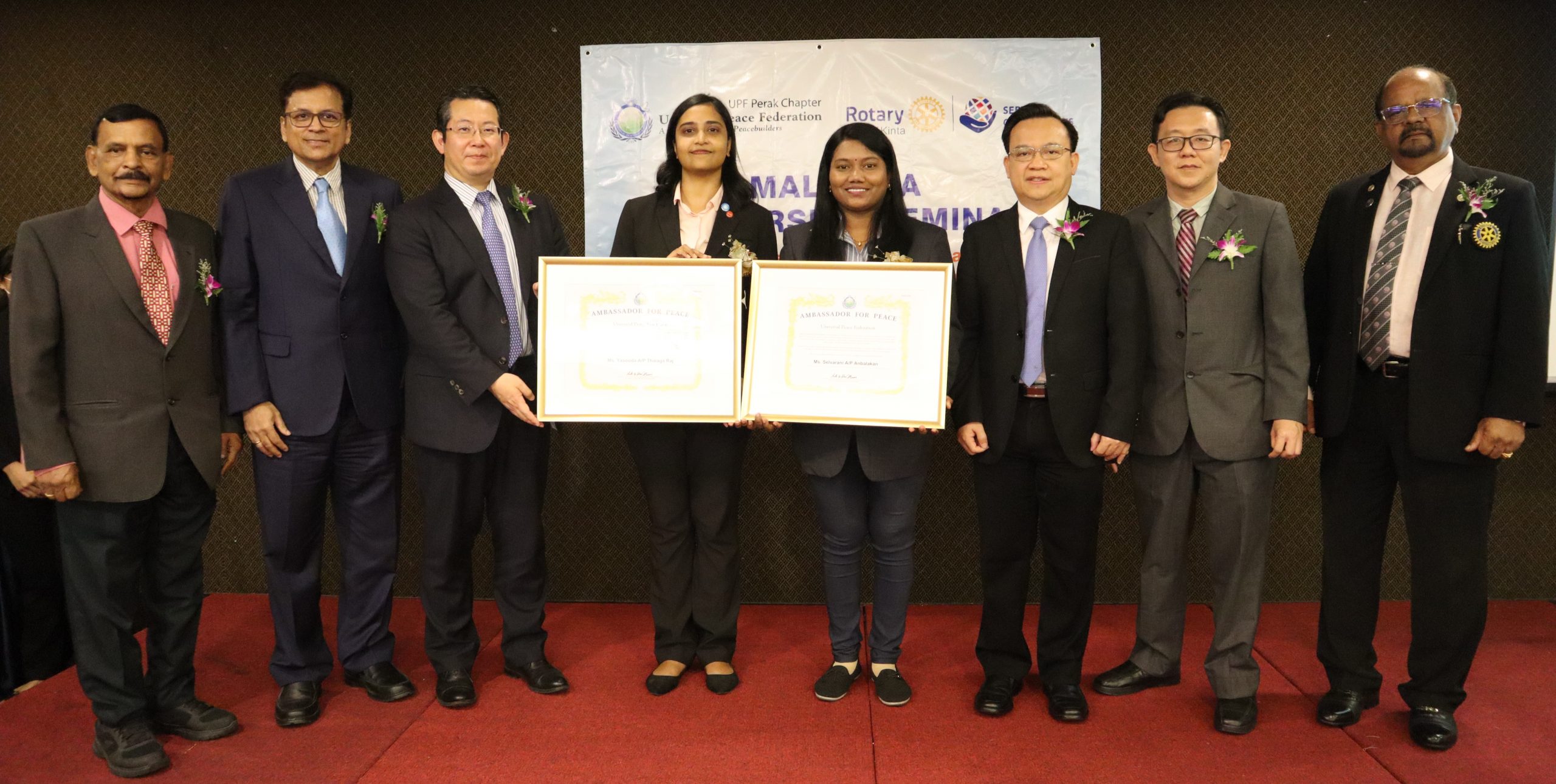 Seven individuals who are active and influential in their specific areas of expertise were honoured with the Ambassador for Peace (AFP) Award during the recent Malaysia Leadership Seminar which was jointly organised by the Universal Peace Federation (UPF) Malaysia and Rotary Club of Kinta at the Kinta Riverfront Hotel.