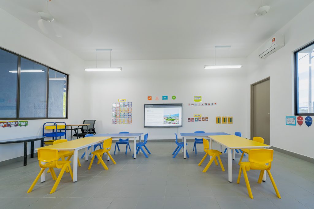 Located next to The Centro clubhouse, Kinder Labz BBSK is equipped with fully air-conditioned classrooms with smartboards, a multipurpose room, a playground to encourage students to stay fit, kitchen, dining area and medical bay.