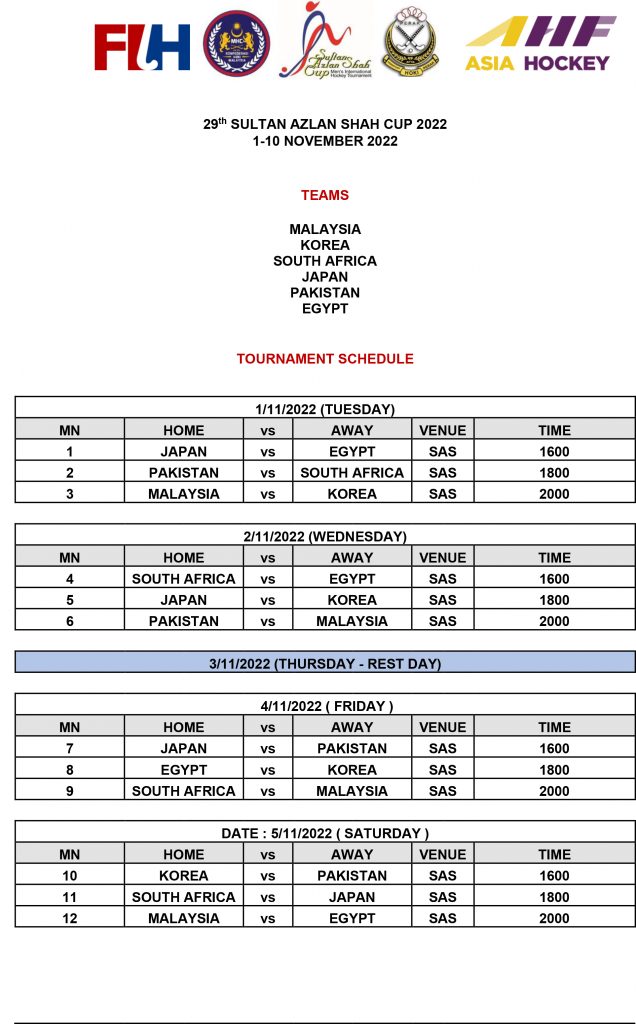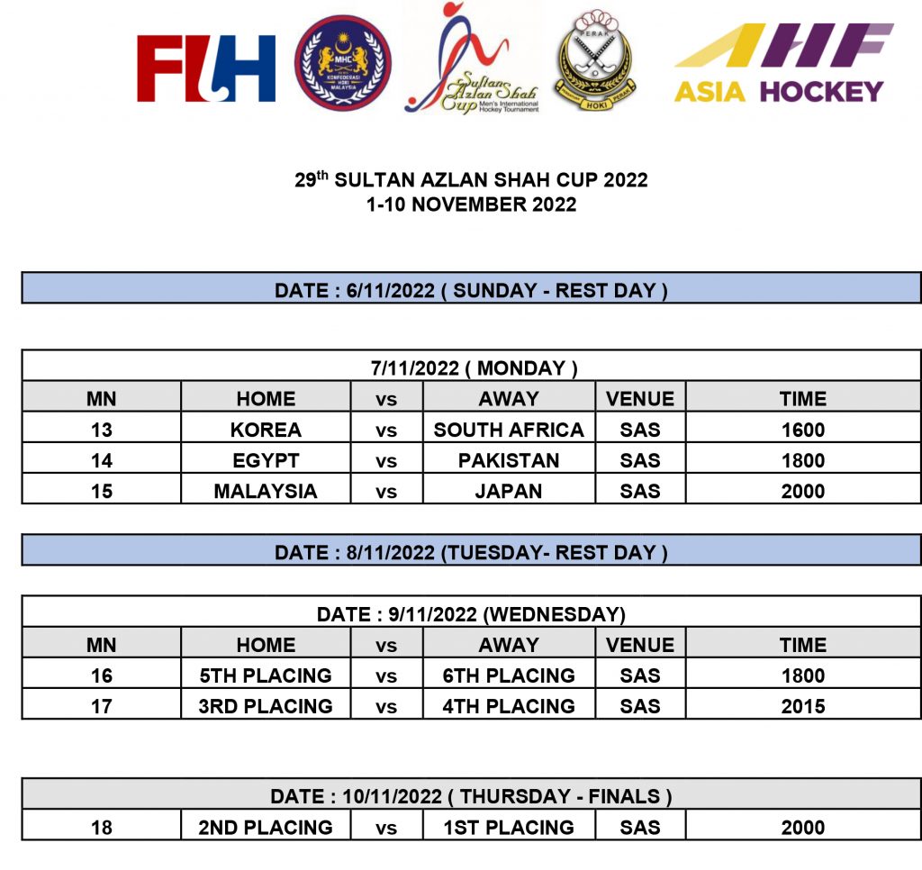 | 4. | SATURDAY | 5 NOV 2022 | MALAYSIA VS EGYPT | 8:00 PM |