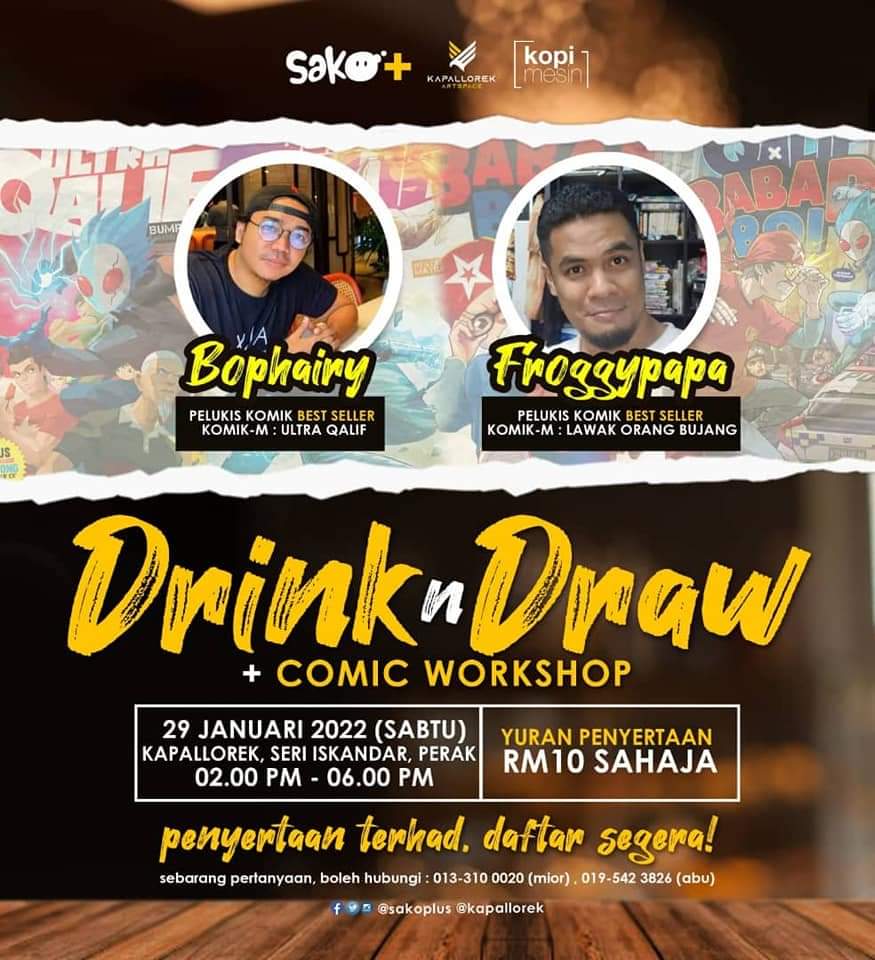 The Perak Tour Drink N Draw series is a cartoon and comic drawing workshop programme with the concept of drawing casually with famous cartoon and comic artists.