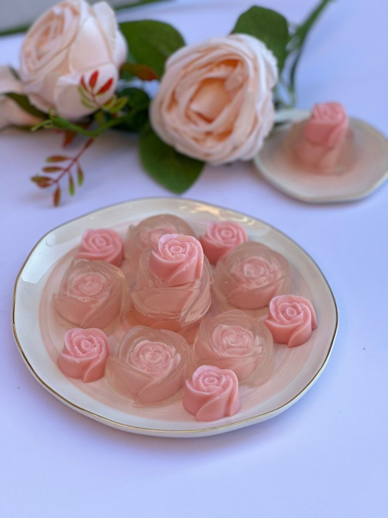- Remove the jelly from the mould and place it in the middle of the 5 cm rose silicone mould.