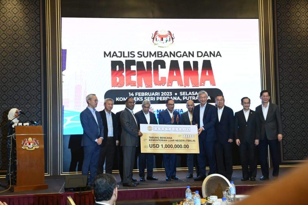 The Disaster Fund Donation Ceremony to ease the burden of victims of the Turkish and Syrian earthquake was held at the Seri Perdana Complex