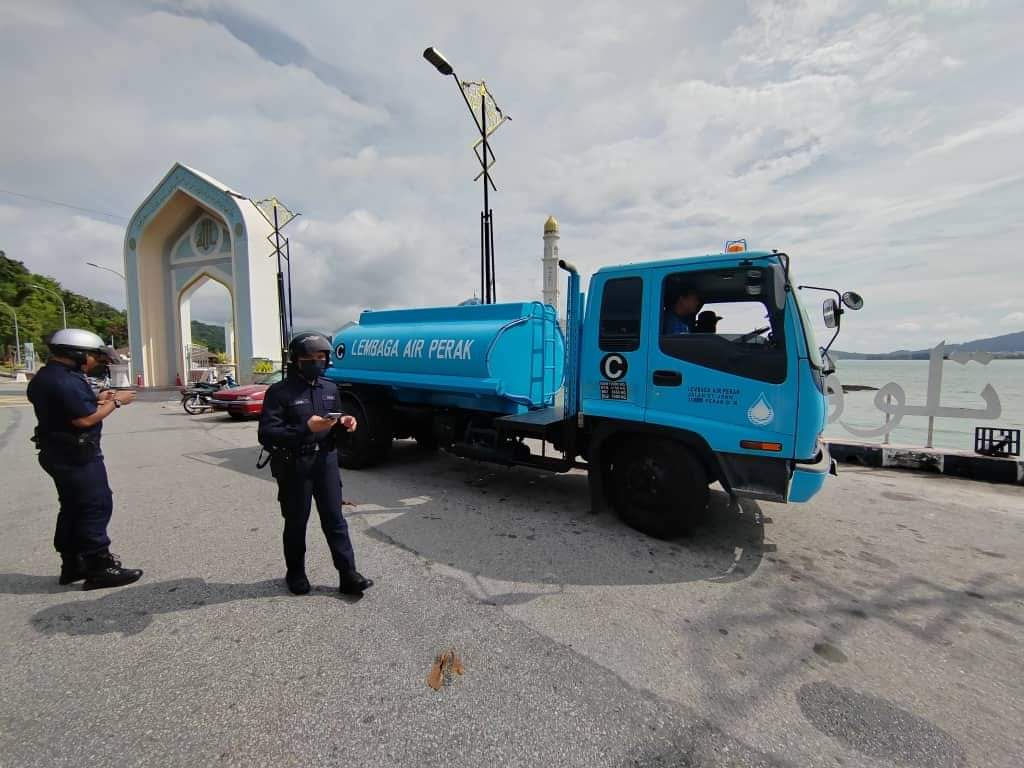 Since this morning, the Perak Water Board (LAP) has made two trips to deliver four water trucks to the island using the ferry service.