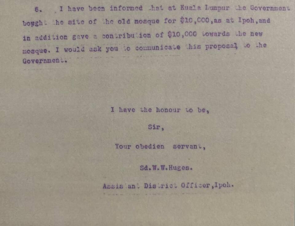 “During that time, Ipoh was developing. So they took over the site of the mosque and the compensation from the takeover was the construction of a new mosque in another location, the Panglima Kinta Mosque,” he said.