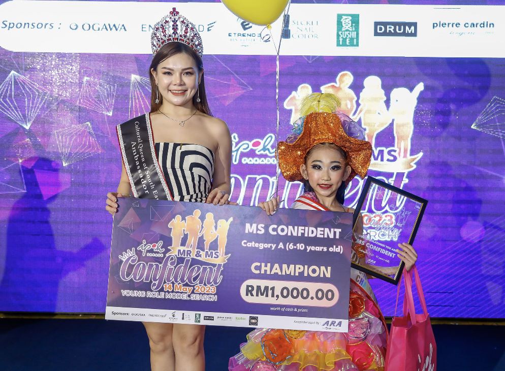 Kimberly at just 10 years old, proved herself to be a triple threat at the Ipoh Parade Mr & Ms Confident 2023 Competition. Not only did she take home the Ms Confident title for the 6 to 10 years old category, but she also earned the Popularity and Most Talented Awards.