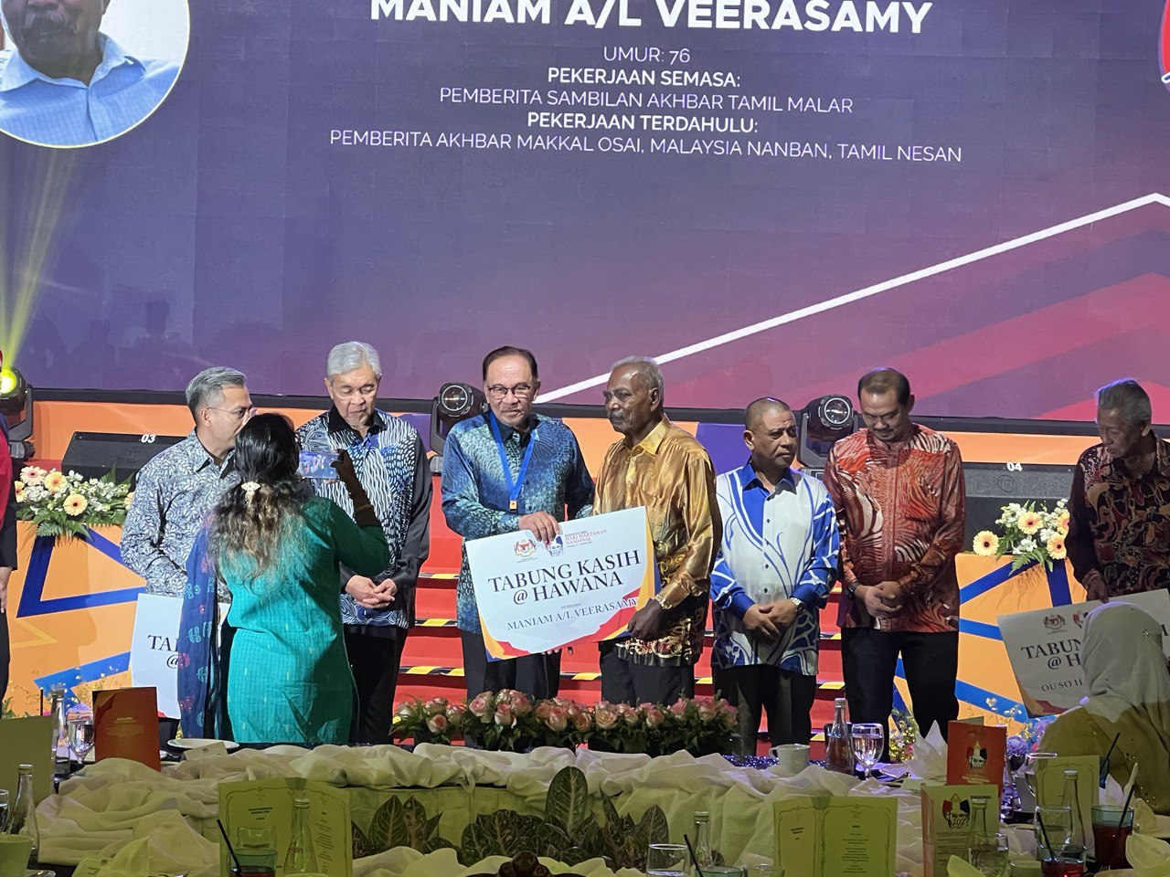 At the ceremony, Anwar also presented gifts to the recipient of the 2023 HAWANA Award, legendary cartoonist, Datuk Mohammad Nor Khalid as well as three recipients of Tabung Kasih@HAWANA consisting of veteran journalists.